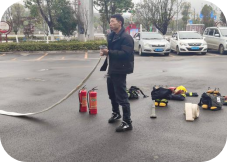 演练正式开始前,消防器材维保单位的专业技术人员首先开展了消防器材知识讲解与操作演示。针对灭火器、消防栓、消防员灭火防护服、消防水带等核心消防设备,技术人员结合实际应用场景,详细介绍了各类器材的结构原理、适用范围、检查维护要点及正确操作流程。在讲解灭火器使用时,重点演示了“提、拔、握、压”四字操作法,强调了灭火时需站在上风向、保持安全距离等关键注意事项;对于消防栓与消防水带的配合使用,现场展示了水带连接、接口紧固、水流控制等实操步骤,逐一解答了参与人员提出的疑问,确保大家清晰掌握器材使用的核心要领。