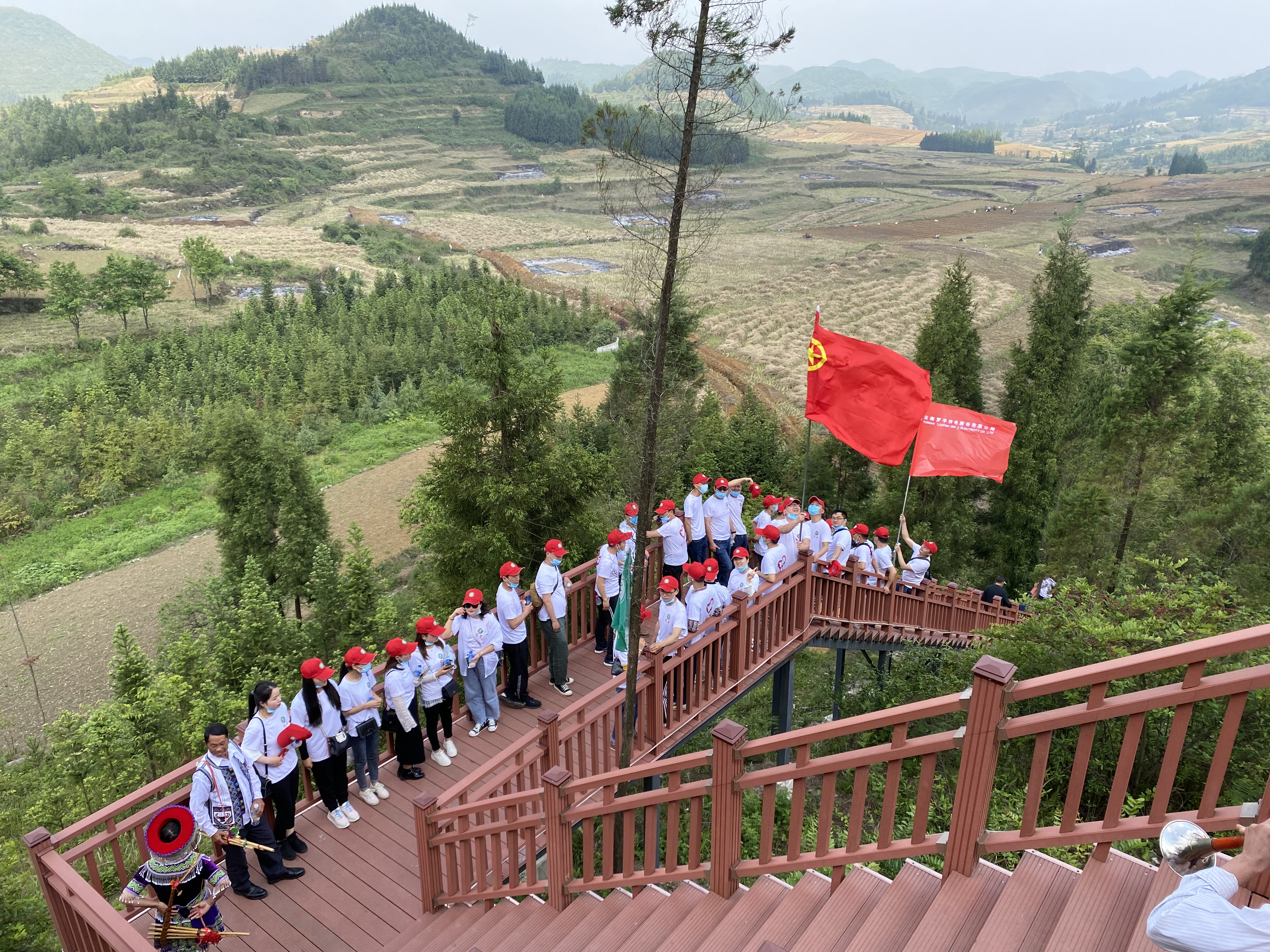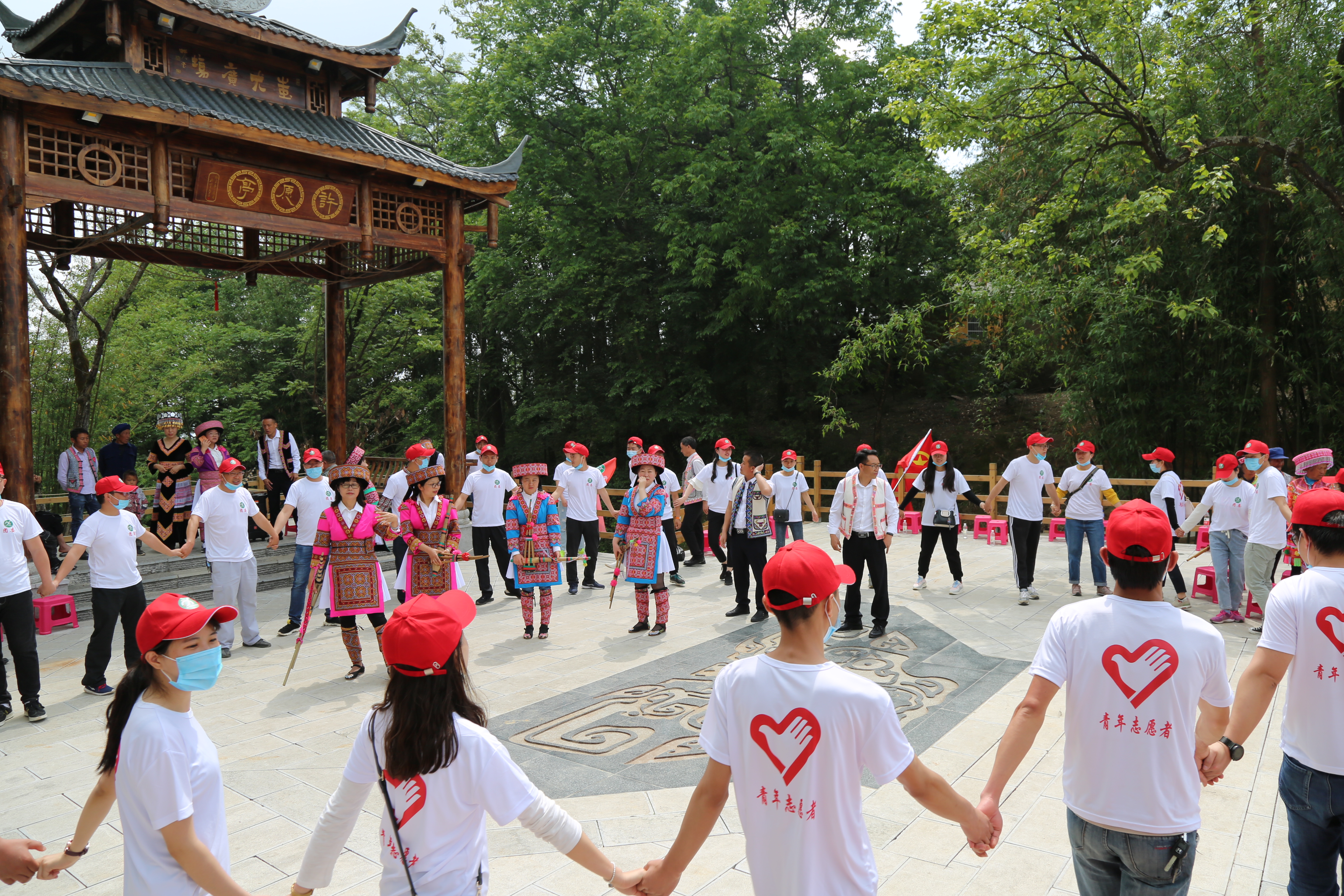 5月1日上午9:00,公司40余名青年代表身着统一的队服和队帽,乘车来到大水井乡棠梨凹苗族文化村进行户外团建活动。五月的棠梨凹,阳光明媚、绿树成荫。一路上大家欢声笑语、互相关心、互相帮助,欣赏了最美十万峰林,享受了苗族迎宾的最高礼仪,品尝了最美味的苗家羊汤锅,体验了现场舂粑粑、石磨、荡秋千等有趣的娱乐活动,也和当地苗族村民一起载歌载舞。处处呈现出团结友爱,欢快和谐的气氛。